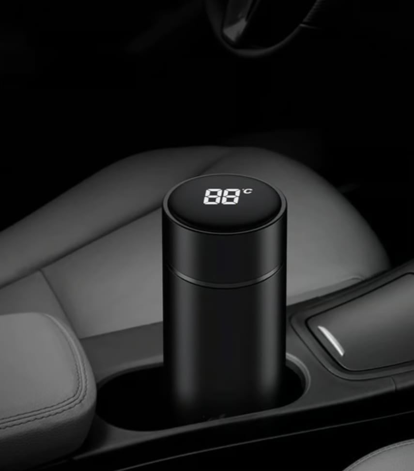 A Garrafa de inox tem um design inovador com uma tela touch de LED na tampa para consultar a temperatura do líquido. Ela é altamente eficiente, conseguindo manter a temperatura interna por 12 horas. Além disso a garrafa possui um sistema à prova de vazamentos, sendo ideal para transporte.